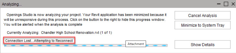 Openings Studio™ needs to connect to its servers to analyze projects and download project data. If you are experiencing issues when analyzing, exporting, or loading the application, it’s likely your network security system is blocking the connection.